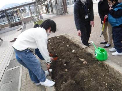 毎年植えていますが,大きくなるようにもう一度種いもの植え方を確認しました。