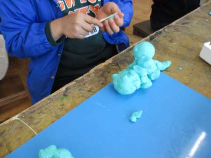 粘土を使って,生き物とおさんぽする自分を作りました。