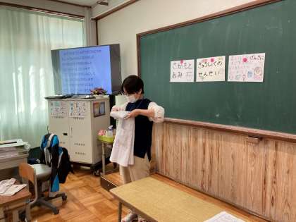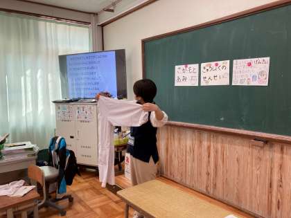 そのときに着る,エプロンのたたみ方を歌にして教えてもらいました。