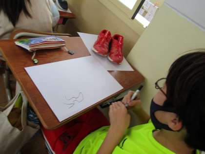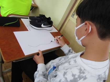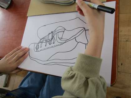 履きなれた自分の靴をよーく見て,油性ペンでかいていきました。