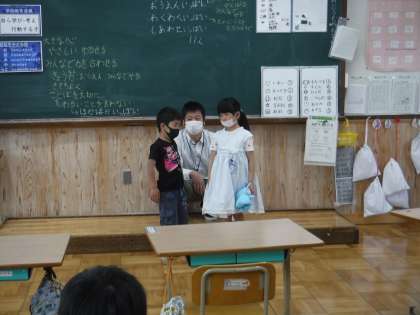 今日の日直は,1年生2人でしました。前に出ると少し恥ずかしそうでしたが,2人で力を合わせてがんばりました。