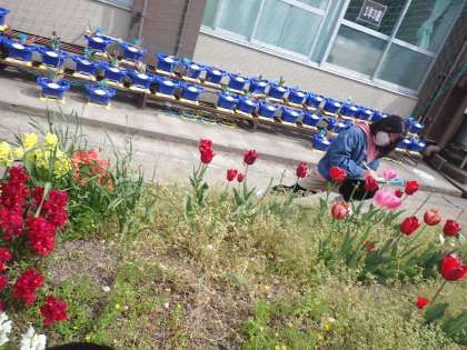 お気に入りの花を決めて,スケッチをしています。花びらの重なり方や,はっぱの形をよくみて描いています。一生懸命描いていました。