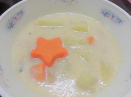 じゃがいものクリームシチューに,星形のにんじんが入っていました!