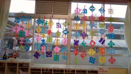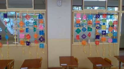 早速 教室の窓のところに飾ってみました。風に揺れて いい〜感じです。