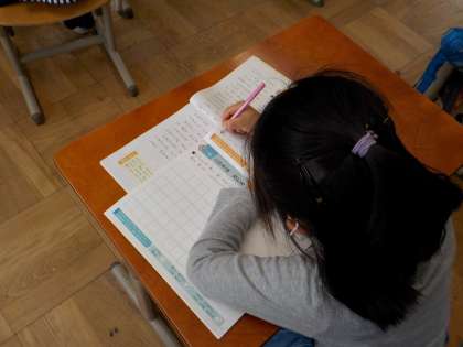 2年生になって2回目の道徳です。一生懸命ノートに自分の考えを書いていました。中には欄の外まではみ出るぐらいたくさん書いている子もいました。