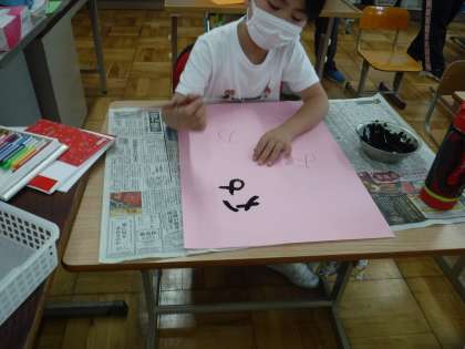 「助け合う」「優しさ」「なかよく」など考えて書きました。1年間めあてをもってがんばりましょう!