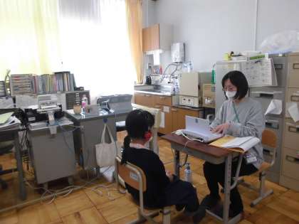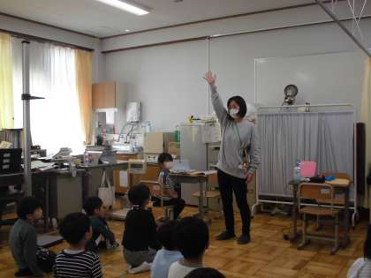 最初に,保健室で養護の先生から,検診の説明をしてもらいました。先生の話をよく聞いて,静かに検診を受けることができました。