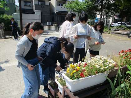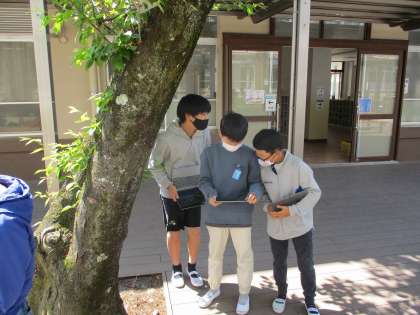 学校のなかにある,春を感じられるところを写真にとり,その写真を使って,俳句や短歌を考えました。