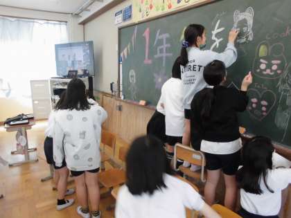 宝探しならぬ「先生探し」をすることになり,大宮小学校の先生の名前が書かれた折り紙を1年生に探してもらいます。