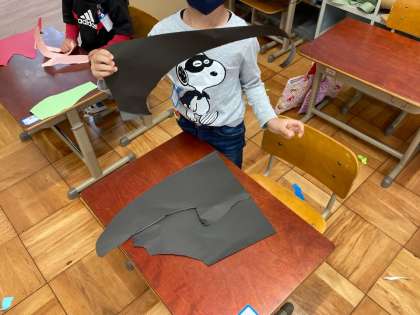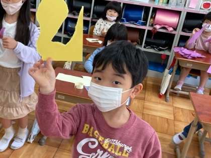 偶然できた形を見て,さっそく想像をふくらませていました。