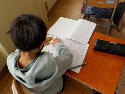 「きょうのできごと」の学習では日記を書いています。今日は作文帳に清書しました。はじめ・中・終わりを意識することや「」の書き方が難しかったようですが,一生懸命書いていました。もうすぐ作文の宿題も始まります。宿題をするときに困ったら,今日書いたノートを見返して取り組むといいですね。