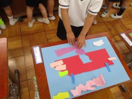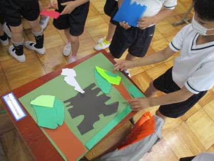 画用紙の上に並べると,空の世界や森の世界が広がりはじめました!
