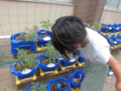2年生の畑や個人の鉢に植えた野菜たちが,ぐんぐん育って大きくなってきています。