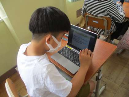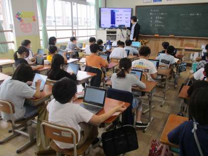 4年生の総合的な学習では,〈共に生きる〉と題して高齢者の方や障がいのある方と共に生きる社会ついて学習しています。今日は,タブレットを使って調べたことをレポートにまとめました。