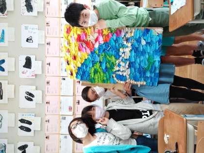学校のみんなや,地域の方からも折り鶴をいただき,無事完成することができました。