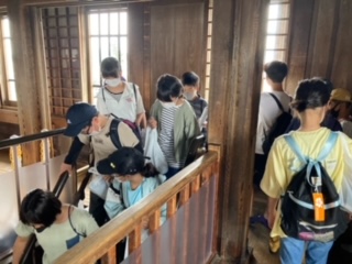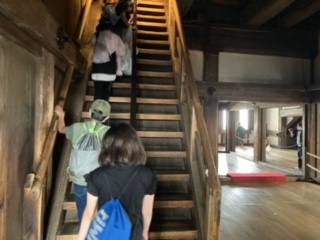 天守閣の上の方まで来ると、姫路市内がよく見えます。景色を見た後は、階段が急なため、ゆっくり降ります。