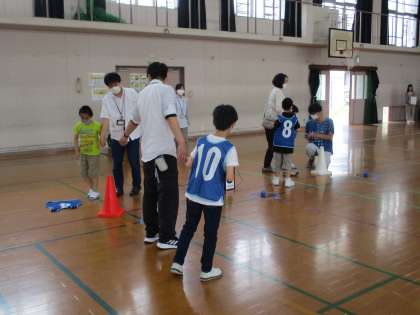 みんなで考えたプログラムで司会進行もしました。「デカスカはいポーズ・ボッチヤ・おおあたりゲーム」を教職員のみなさんとしました。なかよくなれてみんな大喜びでした。