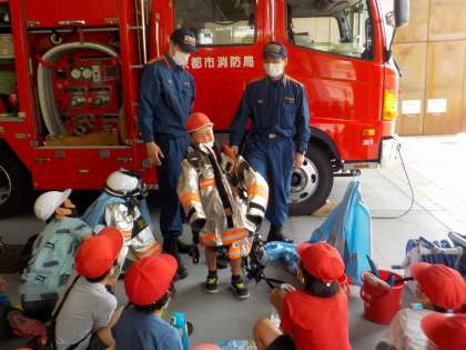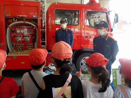 消防隊員の方の説明や実際に消防器具に触れ,良い体験になりました。