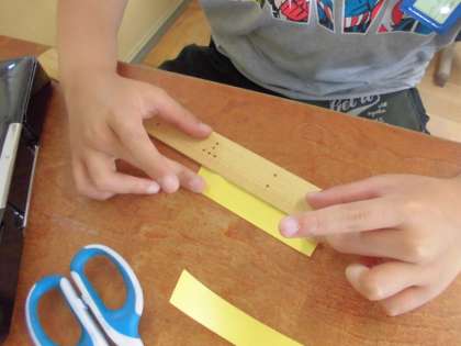 切ったあとにものさしで測ってみると,なかなか10cmぴったりにはならない様子です。「くやしい〜」「もう一回やりたい!」と楽しそうに活動していました。