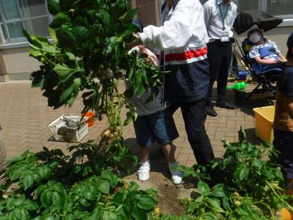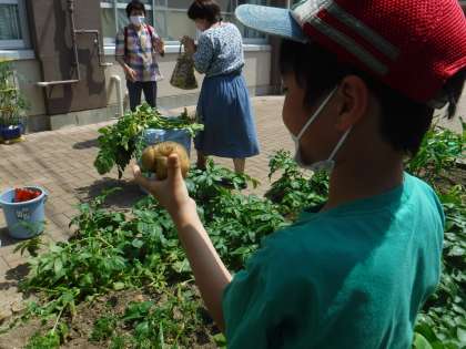 今日は,そらいろ畑のジャガイモを収穫しました。自由参観日だったのでお家の方も一緒に「わあ!すごい!」と盛り上がりました。