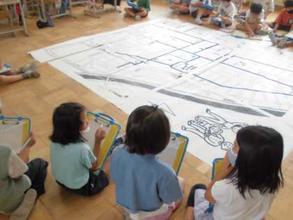 教室に広がる大きな地図をみて,わくわくしている子どもたちでした♪