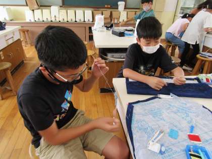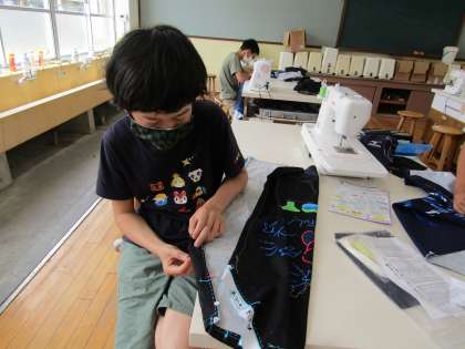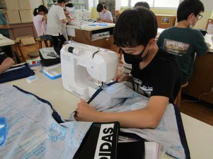 仮縫い・ミシンを繰り返し,エプロンづくりに取り組んでいます。