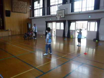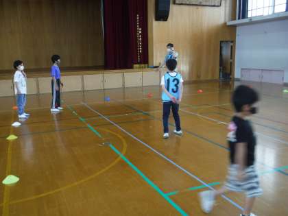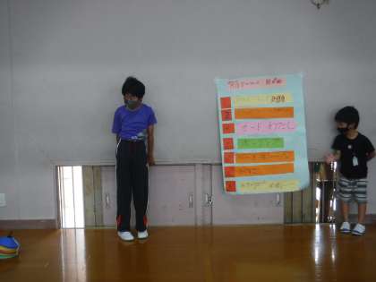 ベースボールの後,司会が,「おにごっこをします!」「誰がおにになる?」「最初は,先生で増えていくよ!」「わあ!にげろ!」と盛り上がりました。終わりのことばは,「今日も楽しかったです。カードもありがとう!」で終わりました。