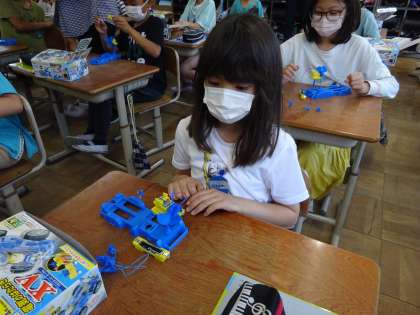 理科の時間にモーターをつなぎプロペラを動かしました。