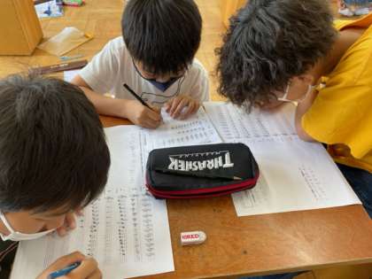 待っている時間はプリントや指の練習をしていました。