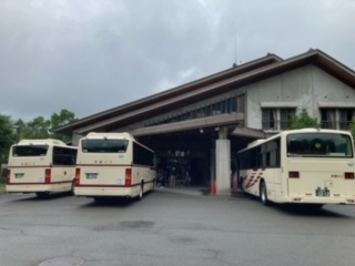 花背峠を越えた辺りから雨が降ってきました。それほどきつくないのですが、本館までバスが上がってくれました。