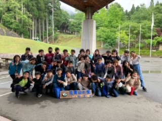 残念ながら、雨がきつくなってきました。フライングディスクゴルフはやめて、玄関前でクラス写真を撮って、プレイホールで遊ぶごとにしました。