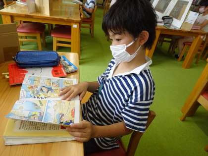 学校図書館へ行った際はいつも静かに本に夢中になっています。