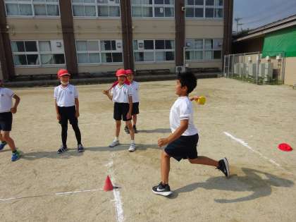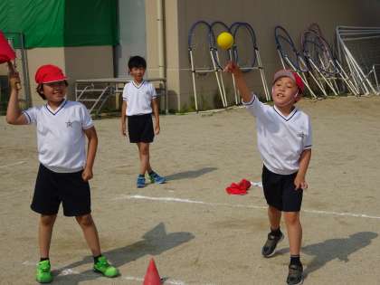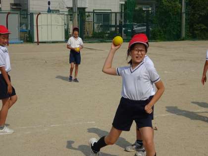 前の自分の記録をこえるためにどのように投げるかを考えながら自分の記録に挑戦しています。