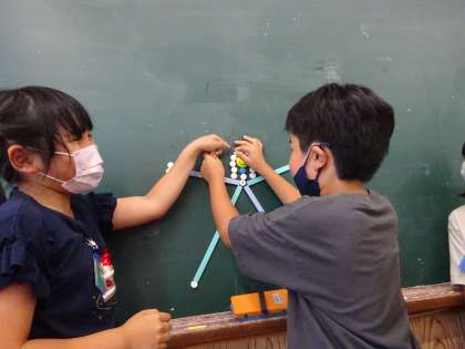そんな中中遊びでは、磁石を使って色々な形を作っている様子がありました。