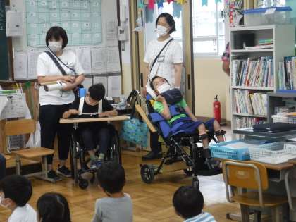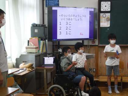 今日から1年生とそらいろ学級との交流が始まりました!そらいろ学級のことを知って同じ大宮小学校のなかまなので一緒にがんばりましょう!と話しました。そらいろクイズとおおあたりゲームをしました。1年生も「たのしかった!」と笑顔で帰って行きました。
