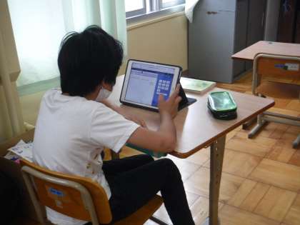 高学年でタブレットを使って算数の学習をしています。