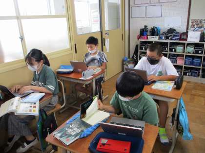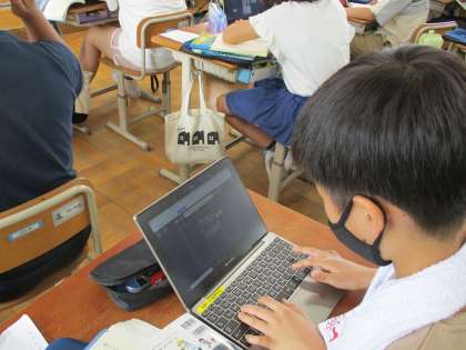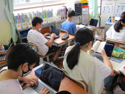 今日の授業では、おすすめの本の魅力などをタブレットを使ってまとめていきました。