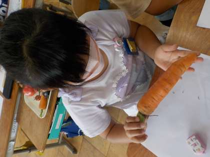 品評会で頂いた野菜をみて絵を描きました。