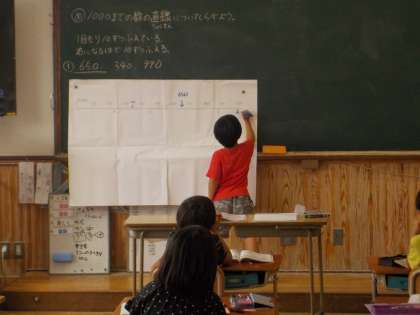 千までの数の数直線を使って学習しました。一目盛りがいくつになっているか考えて問題を解くことができました。