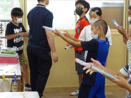 理科の時間に空気鉄砲で的あてに挑戦しました♪