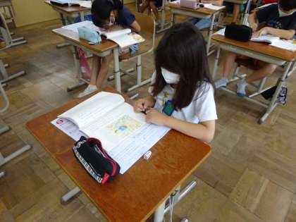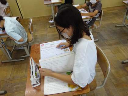 例文に、つなぎ言葉に続けて後の文章を考えました。