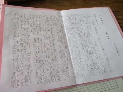 戦争中の様子を描いた物語「一つの花」を読み深め、感想文を書きました。最初に読んだ時と読み深めた後で考え方が変わったところを中心に、しっかりと感想をを書けていました。