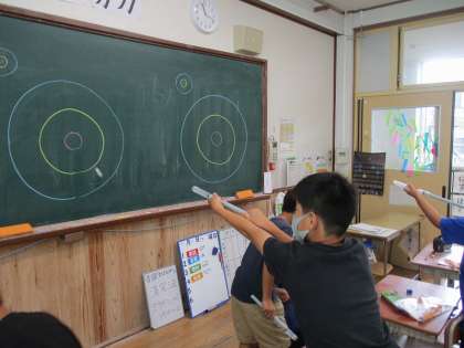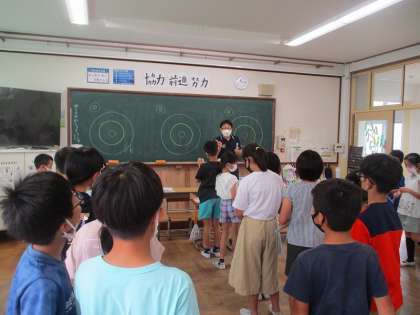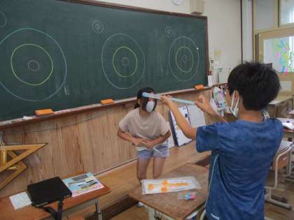 理科「空気と水」で空気砲を使って的あてゲームをしました。ポンッという音にみんな楽しそうでした♪