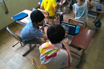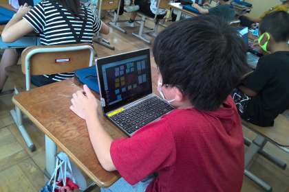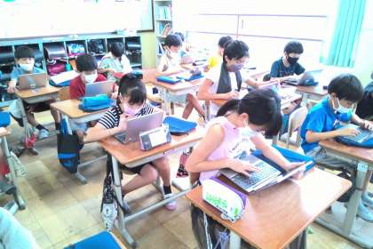 国語では、つなぎ言葉について学習しています。たくさんあるつなぎ言葉から1つ選び、前後の文を作文しました。今回は、ロイロノートを使って前後の文を考え「つなぎ言葉カード」でつなぎました。つなぎ言葉の種類によって、前後の文がどのように対応するのかを実感できました。
