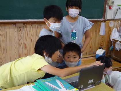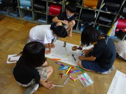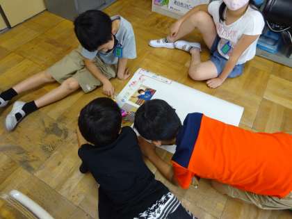 みんなで話し合いながら素敵な新聞を作っています。