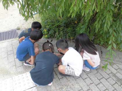 生活科の学習で,学校の中にいる生き物を探しに行きました。