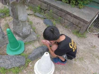 ダンゴムシやチョウ,アリなど,子どもたちは夢中で生き物を探していました。