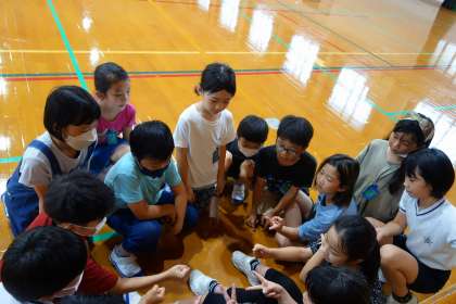 1学期の間に友達と深めてきた絆で、学期最後のみんな遊びを企画しました。この日のために遊びの内容やチーム決め、ルールの確認、ポスター作りなどで2週間ほどかけてきました。じっくり準備を進めてきたので、みんな思いっきり楽しんでいました。代表委員を中心に企画、話し合い、当日の遊びを協力して進めることができました。
