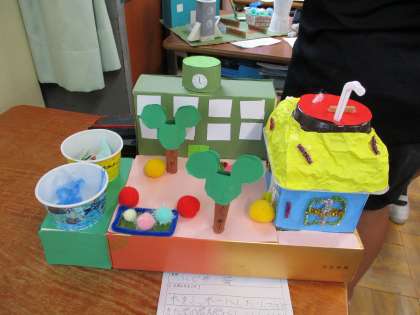 今日は、図画工作科「ドリームプロジェクト」の学習でつくった作品の鑑賞をしました。
