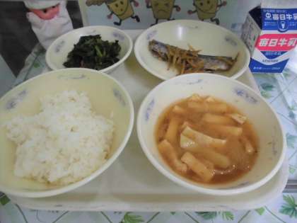胚芽米ごはん 牛乳 さんまのしょうが煮 ほうれん草のおかか煮 みそ汁 でした。